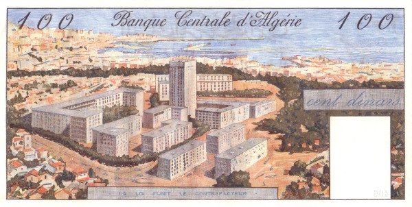 The 100 Algerian Dinars banknote issued in 1964 forms part of Algeria’s first definitive currency series following independence in 1962. Produced by the Banque Centrale d’Algérie, this denomination reflects the young nation’s ambitions for economic growth, industrial development, and urban modernisation. The note combines detailed illustrative engraving with bilingual inscriptions in French and Arabic, characteristic of Algeria’s early post-independence monetary identity.