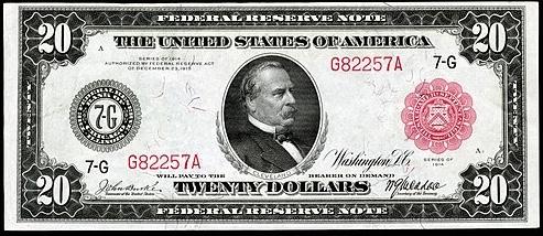 US 20 Dollar Banknote (Red Seal) First Issued 1914