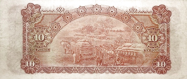 The 10 Australian Pounds banknote issued between 1923 and 1927 is an early Commonwealth Bank of Australia high-denomination note from the interwar period. Printed in a rich monochrome engraved style, the design reflects the formal aesthetic of early Commonwealth currency — highly decorative borders, elaborate typography, and narrative agricultural imagery intended to communicate economic strength and national identity.