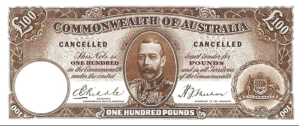 The 100 Australian Pounds banknote issued between 1933 and 1939 represents one of the highest denominations produced for circulation within Australia’s pre-decimal monetary system. Printed by the Commonwealth Bank of Australia, the note was primarily intended for large commercial transactions and banking use rather than everyday spending. Its refined engraving, balanced composition, and restrained brown colour palette reflect the seriousness and prestige associated with high-value currency during the interwar period.
