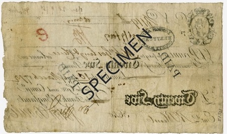 The reverse of this £25 banknote is unprinted, reflecting early Bank of England production methods. Security relied on specialised paper, watermarks, engraved denomination panels, handwritten numbering and multiple authorised signatures rather than a printed reverse design.