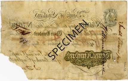 The reverse of this £300 White Banknote is unprinted, consistent with early Bank of England production methods. Security relied on paper quality, engraved denomination panels, handwritten numbering and authorised signatures rather than a printed reverse design.