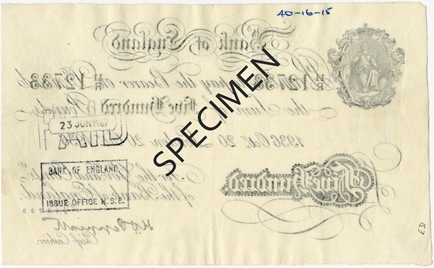 The reverse of this £500 White Banknote is unprinted, consistent with early Bank of England production methods. Security relied on paper quality, engraved denomination panels, handwritten numbering and authorised signatures rather than a printed reverse design.