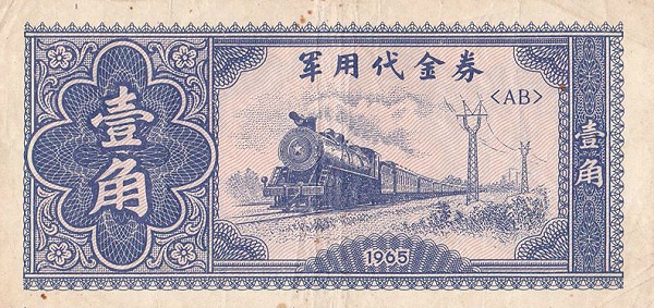 China issued Military Payment Certificates for internal military use, separate from everyday Renminbi circulation. This 1 Jiao (0.1 yuan) certificate from 1965 is a good example of that controlled system: it was designed for restricted use within military channels rather than for the general public, which is why it is commonly classed as non-circulating and effectively withdrawn for normal day-to-day spending.