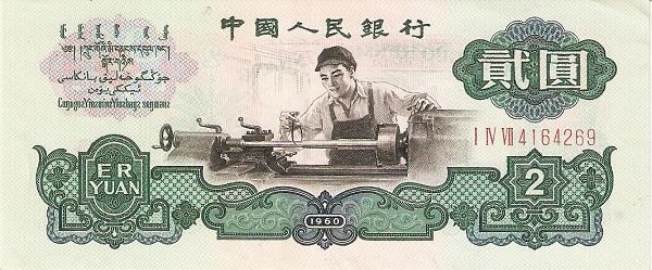 The 2 Chinese Yuan banknote issued in 1960 forms part of the Third Series of Renminbi, a period that reflected China’s early industrial development and socialist themes. This series was introduced as part of a wider effort to stabilise the currency system and modernise banknote production following the founding of the People’s Republic of China.