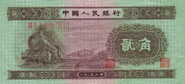 The Chinese 2 Jiao banknote issued in 1953 forms part of the First Series of the Renminbi, introduced shortly after the founding of the People’s Republic of China. These early banknotes were issued by the People’s Bank of China and reflect the country’s post-revolution economic reforms and transition to a unified national currency system.