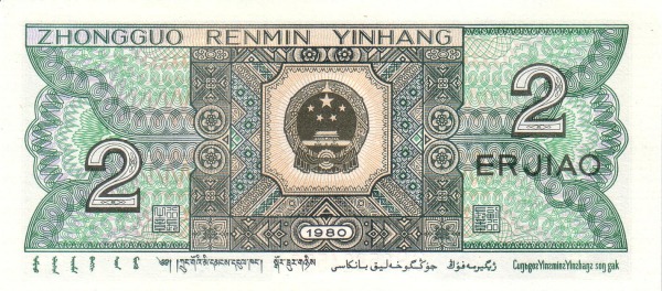 The 2 Yi Jiao banknote forms part of the fourth series of Chinese renminbi issued by the People’s Bank of China between 1980 and 1996. Yi Jiao is a subdivision of the yuan, with 10 jiao equal to one yuan, and these smaller-denomination notes were widely used for everyday transactions during a period of rapid economic change in China.